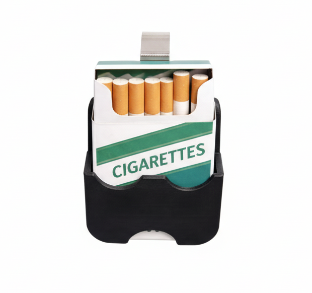 Keep your pack close and your car clean with the Cigarette Visor Clip. This sleek, USA-made holder attaches securely to your car visor using a sturdy metal clip and fits your favorite bogie with ease.